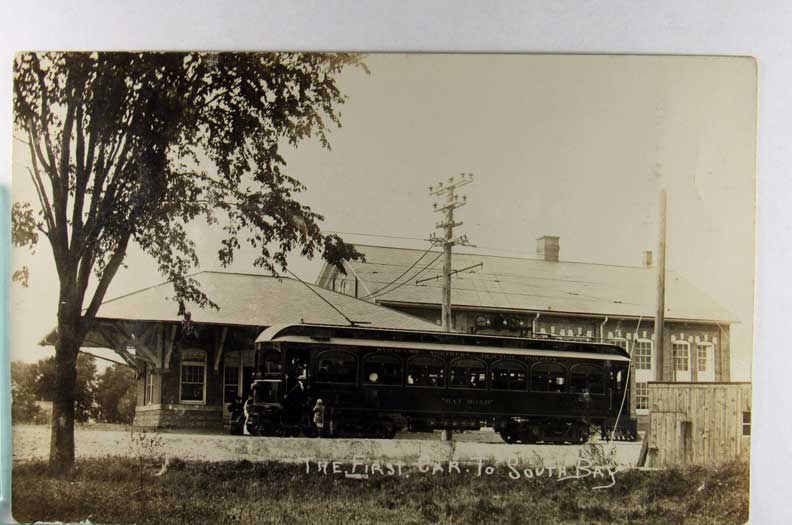 Lot #1325. View Larger | Rotate Street-Car Station, Real Photo, Used Syracuse, New York 1908, “First Car to South Bay” m cor wear F-VF