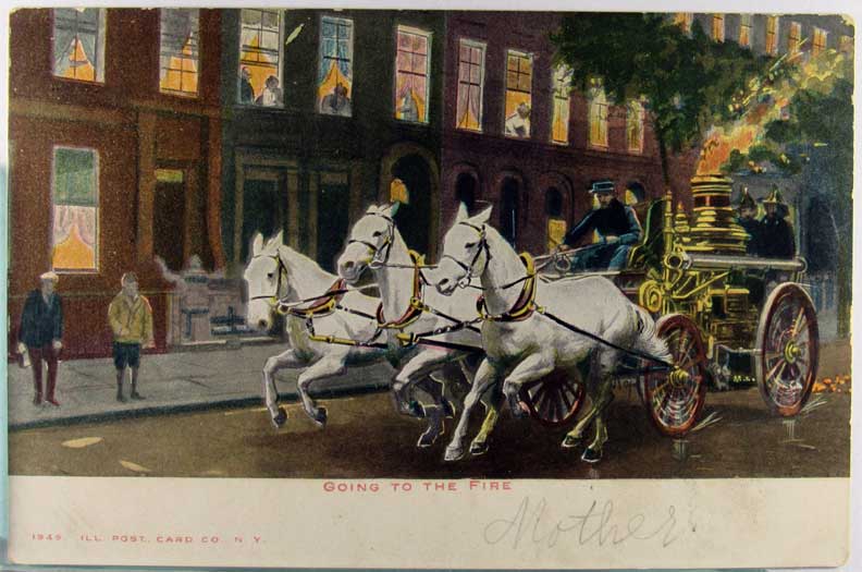 Lot #1314. View Larger | Rotate Horse-Drawn Fire Engine, Tinted Printed Photo UB m wof & m cor wear F-VF