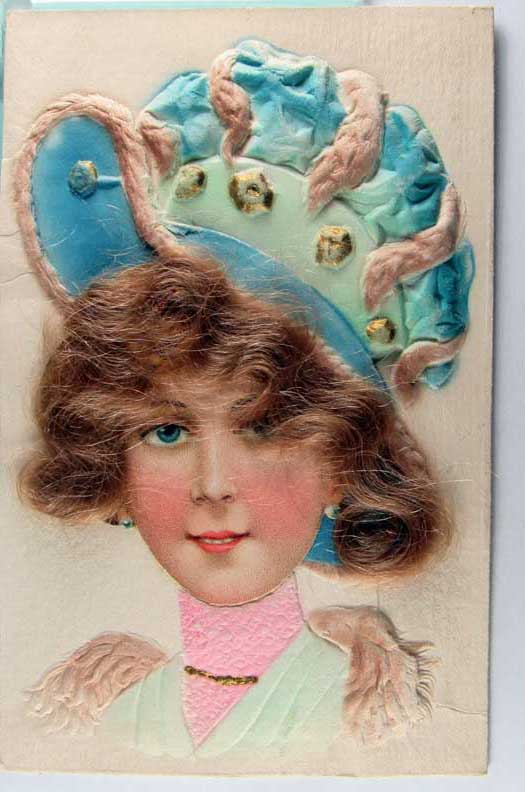Lot #897. View Larger | Rotate Novelty Cloth Hat Add On, French pub. w/ St. Catherine Greeting DB mwof F-VF