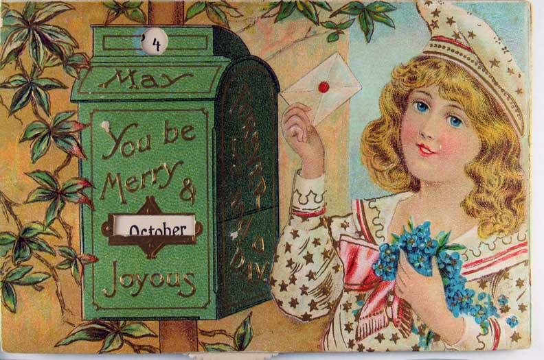 Lot #887. View Larger | Rotate Novelty Mechanical w/ Calendar, Birthday, #355 DB emb m cor wear F-VF