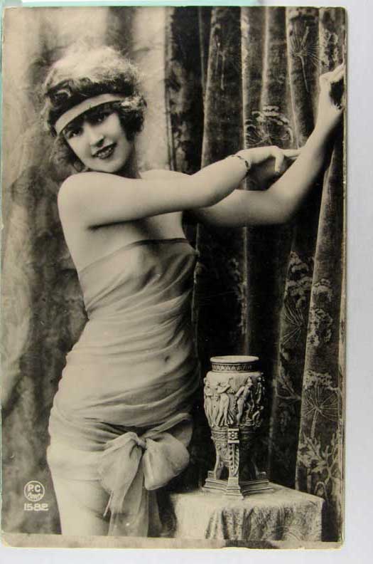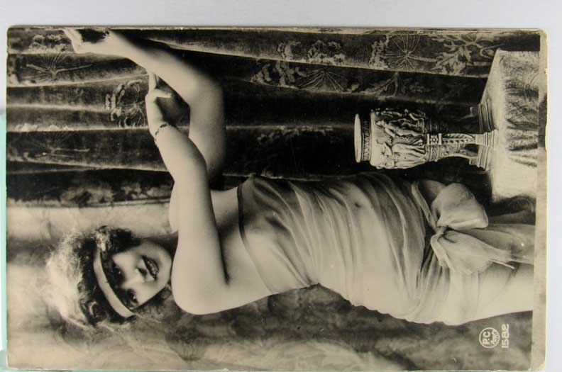 Lot #907. View Larger | Rotate Suzanne Andre, Early French Tinted Real Photo by Walery, “Folies Bergere” ser., very nice DB VF