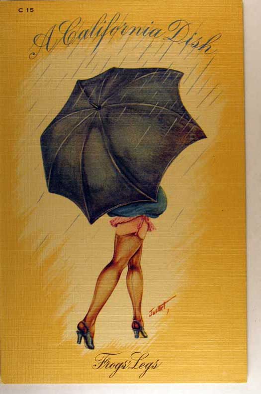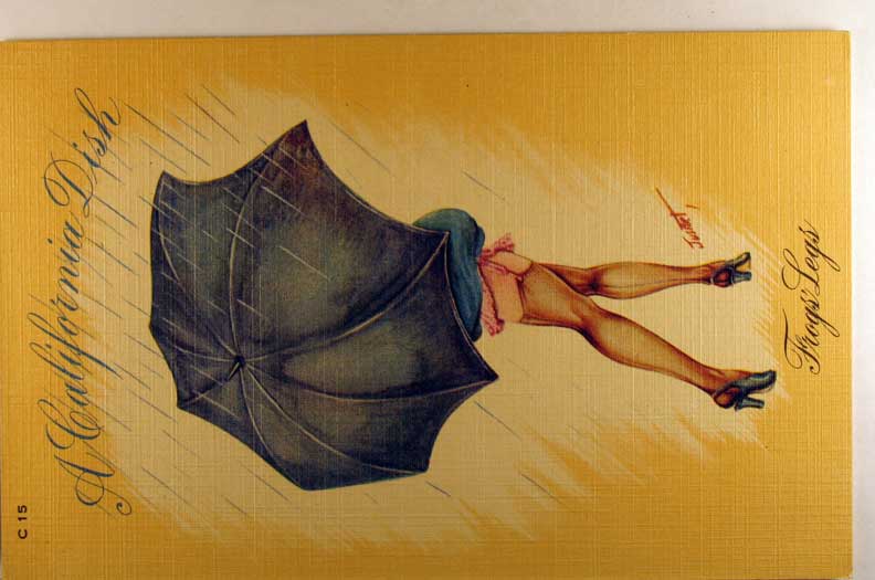 Lot #950. View Larger | Rotate Risque Linen, Art. Sig., “A California Dish” ser., # C 15, Frog’s Legs VF