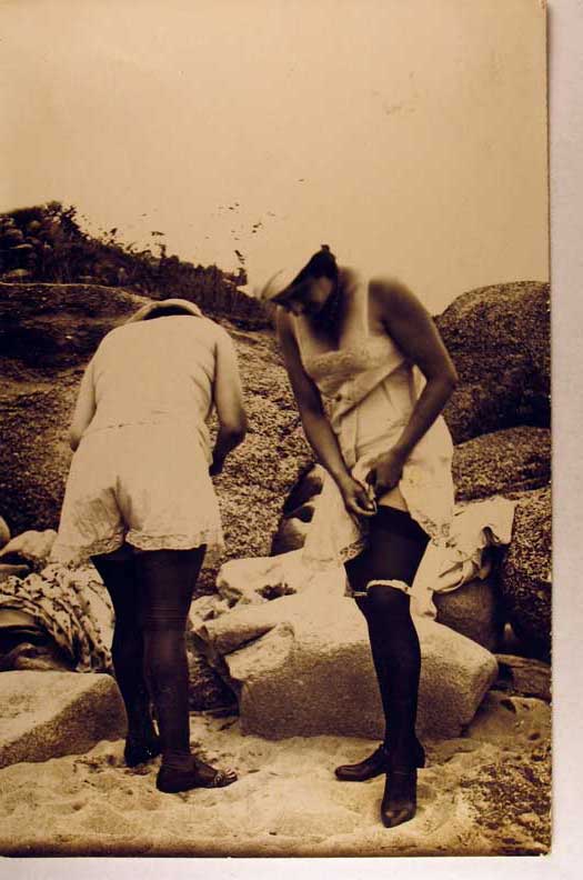 Lot #922. View Larger | Rotate Two Ladies, Risque B&W Photo, At the Beach, w/ French P.C. Back m paper on back VF