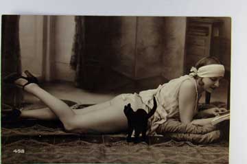 Lot #915. View Larger | Rotate Risque Real Photo #498, Woman Reading w/ Toy Cat, Very nice VF