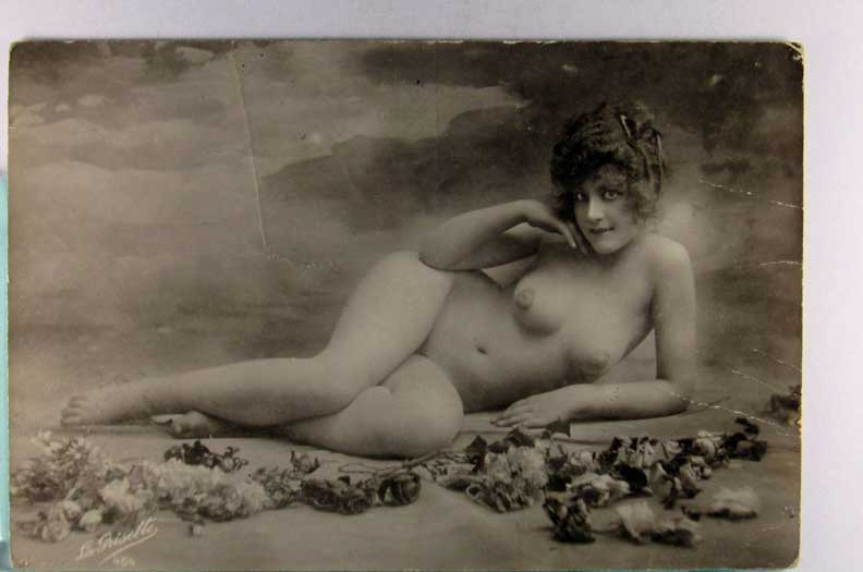Lot #903. View Larger | Rotate Risque French Real Photo, #135 m label on back & pin holes F-VF