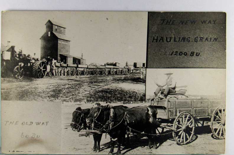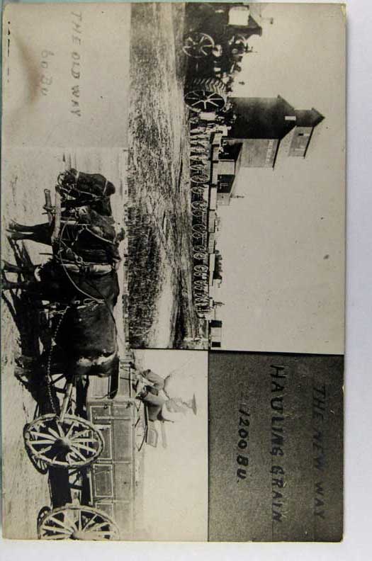 Lot #229. View Larger | Rotate Farming Related, Real Photo Multi-View w/ AZO P.C. back, “New Way Hauling Grain” Near VF
