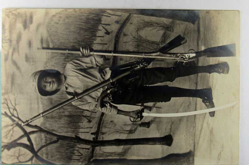 Lot #305. View Larger | Rotate Arcade Style Real Photo, Boy w/Many Weapons, Used Canada 1909 VF