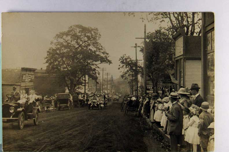 Lot #242. View Larger | Rotate Parade Scene w/ Many American Flags, Real Photo w/ AZO P.C. back m cor cr VF