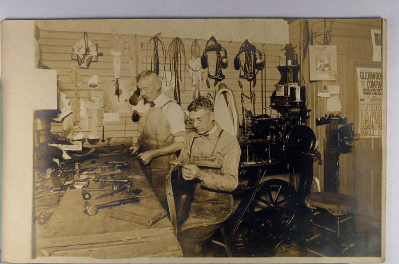 Lot #259. View Larger | Rotate Horse Tack Leather Workshop, Real Photo w/ AZO P.C. back, w/ 1907 Calendar m ink spots Near VF