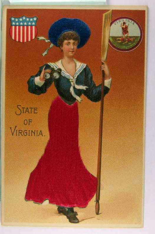 Lot #905. View Larger | Rotate State Ladies Ser., “Virginia”, w/ Novelty Silk Add-On DB emb VF