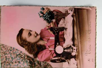 Lot #986. View Larger | Rotate Lady w/ Sewing Machine, Tinted Real Photo, French Pub., #883 m cor wear Near VF