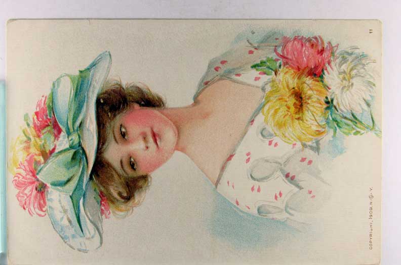 Lot #982. View Larger | Rotate German Tinted photo, NPG ser., Woman w/ Art, very nice DB VF