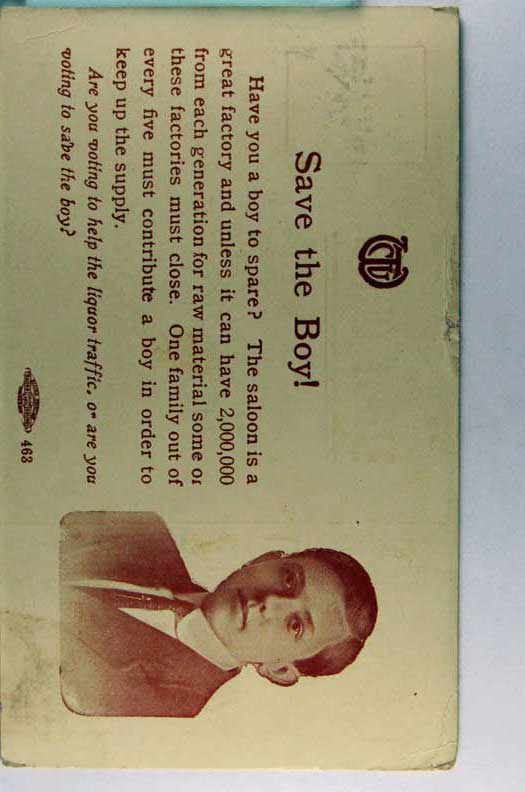 Lot #1073. View Larger | Rotate Anti-Drinking, WCTU Pub., “Save the Boy!”, Used 1916 edge flts F