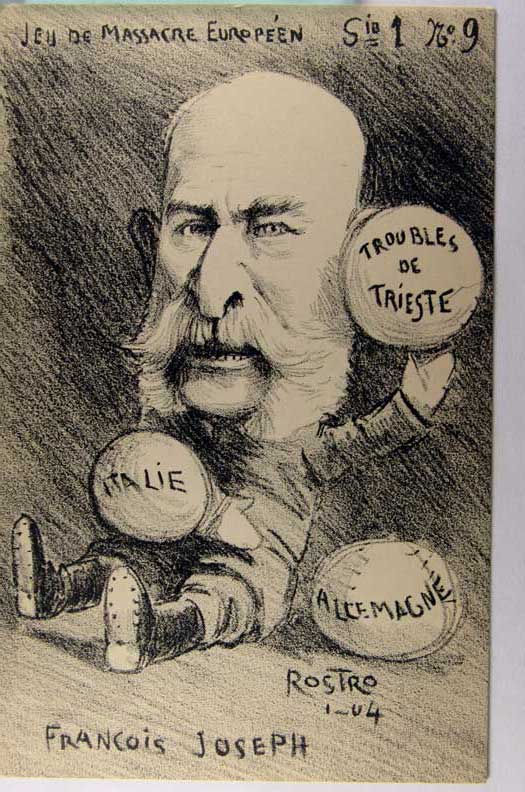 Lot #1076. View Larger | Rotate French Pub. Propaganda, Art. Sig. Rostro, “Massacre Europeen”, w/ Franz Joseph as Baby, Dated 1904 UB VF