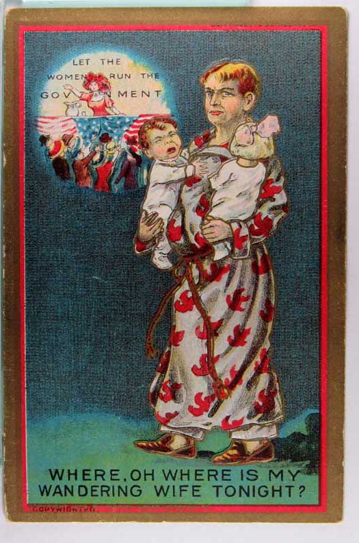 Lot #1045. View Larger | Rotate Suffragette Ser. cpr. Dunston - Weiler 1909, “Where is my Wandering Wife” DB emb wear & edge cr F-VF