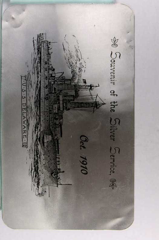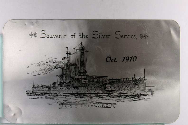 Lot #1242. View Larger | Rotate U.S.S. Delaware, 1910 Metal Postcard for Silver Service Presentation VF