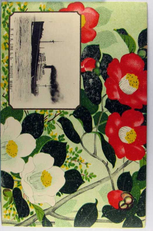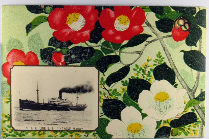 Lot #1235. View Larger | Rotate Japanese Shipping Art Card, Adv. NYK Line, “Hakone Maru” DB trimmed