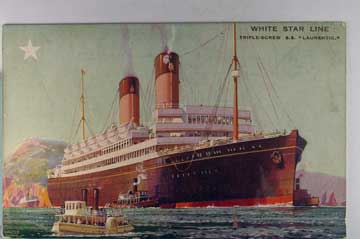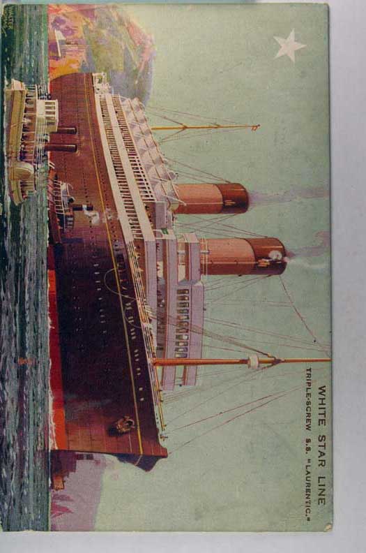 Lot #1240. View Larger | Rotate Adv. White Star Line, “SS Laurentic” DB m cor cr & wear F-VF