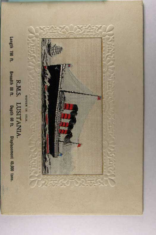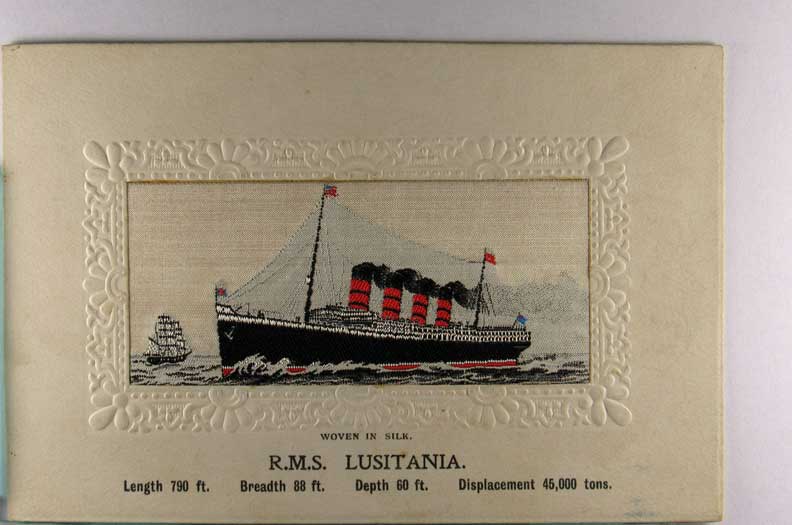 Lot #1240. View Larger | Rotate Novelty Woven Silk, “RMS Lusitania” DB VF