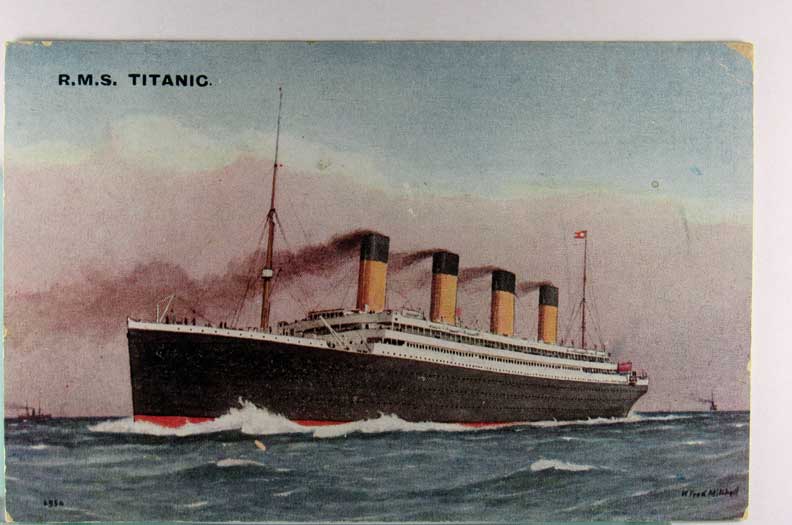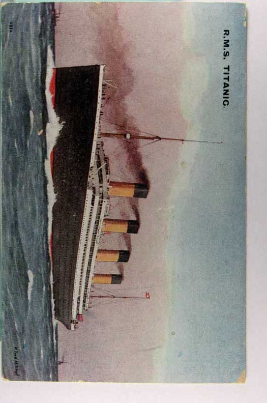 Lot #1239. View Larger | Rotate RMS Titanic, Salmon Pub., Tinted Printed Photo of Drawing DB m cor thins Near F-VF
