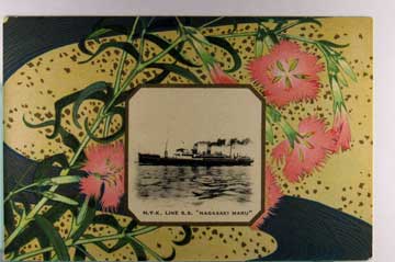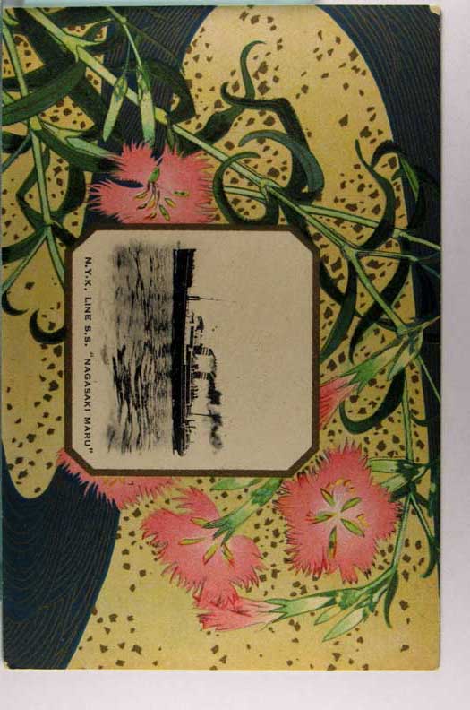 Lot #1244. View Larger | Rotate Japanese Shipping Art Card, Adv. NYK Line, “Nagasaki Maru” DB m cor wear F-VF