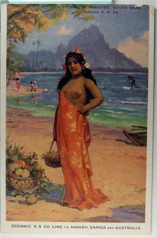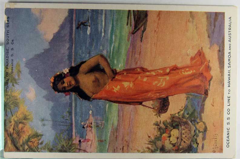 Lot #1245. View Larger | Rotate Adv. Oceanic S.S. Co. Line, “Girl of the South Seas” DB m cor thin Near VF