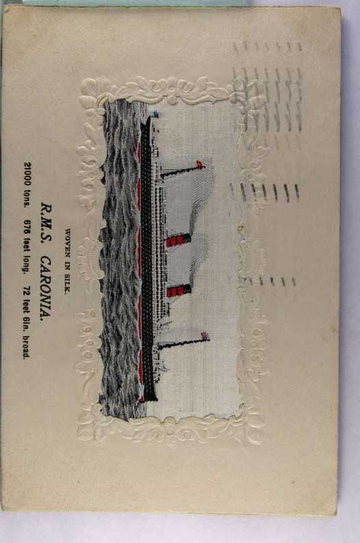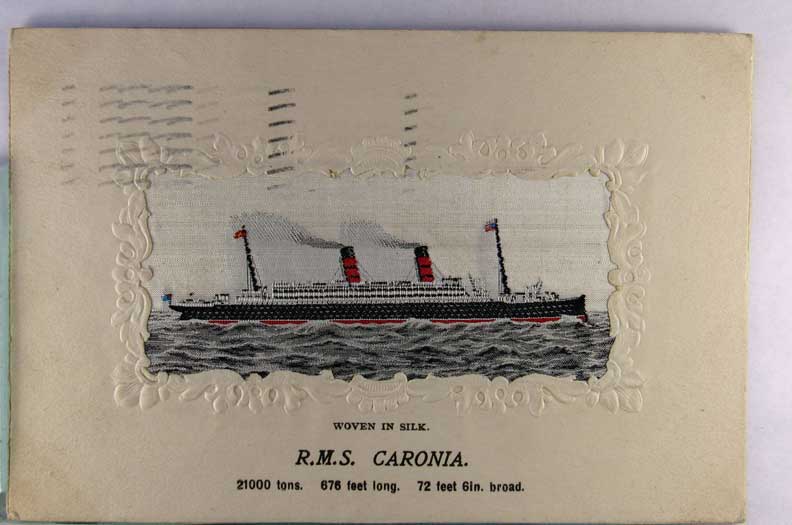 Lot #1228. View Larger | Rotate Woven Silk, RMS Caronia, Used 1905 DB cof & m cor cr Near F-VF