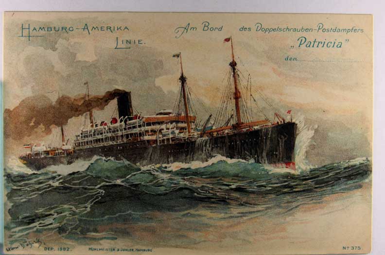 Lot #1233. View Larger | Rotate Adv. Hamburg-Amerika Line, “ Patricia”, #375 UB m cor album marks VF