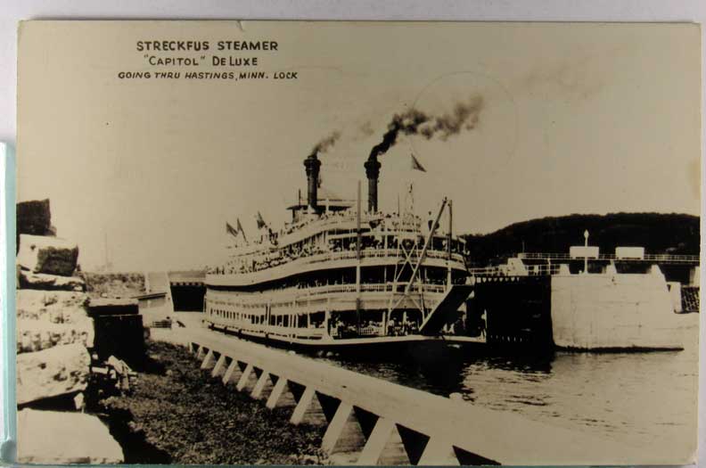 Lot #1252. View Larger | Rotate Steamer “Streckfus”, Hastings, Minnesota, Real Photo, Used 1939 VF