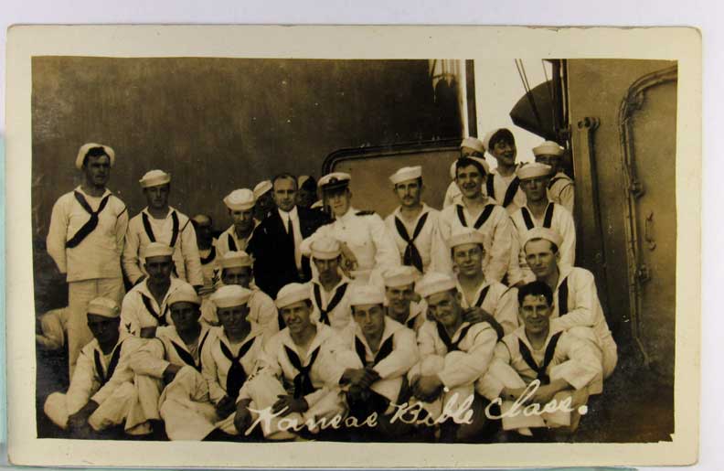 Lot #1244. View Larger | Rotate U.S.S. Kansas, Real Photo w/ AZO P.C. back, “Kansas Bible Class” m cr wear & m edge wear F-VF