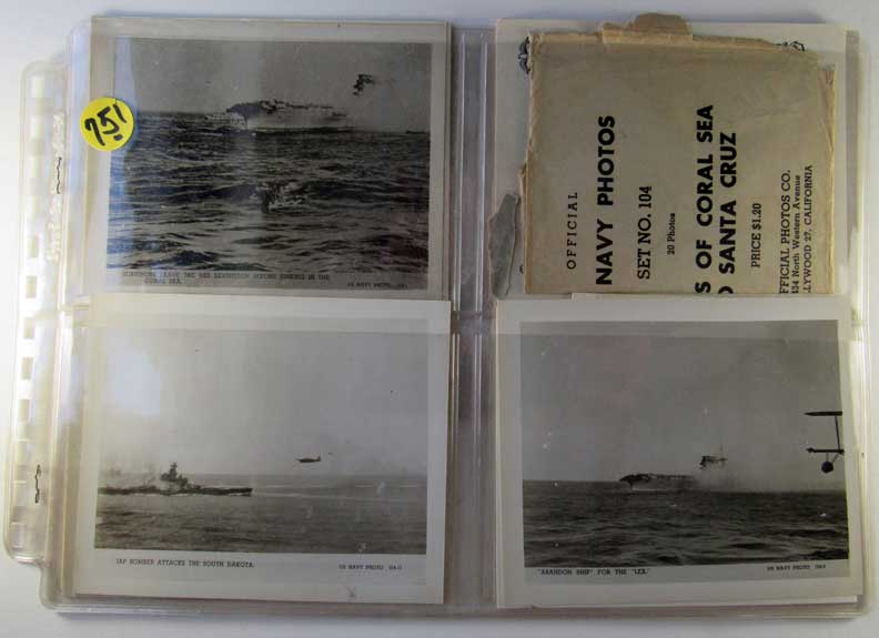 Lot #1248. View Larger | Rotate (19) Nineteen Cards, W.W. II, U.S. Navy Photos, Set #104, “Battles of Coral Sea & Santa Cruz”, Missing One Non P.C. VF