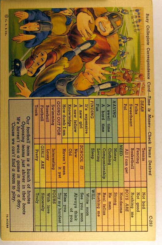 Lot #1224. View Larger | Rotate Football Related Australian Ballot Style P.C., U.S. Curt Teich Pub. L VF