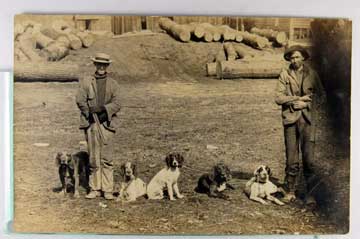 Lot #1085. View Larger | Rotate Hunting Related, Men w/ Guns & Hunting Dogs, Real Photo w/ AZO P.C. back m edge crs Near F-VF