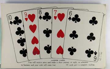 Lot #1096. View Larger | Rotate Playing Card Related w/ Fortune Telling, Arcade Card, Exhibit Co. Pub., Chicago, w/ Non P.C. back VF