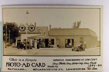Lot #1076. View Larger | Rotate Adv. Photo-Ad Postcards by PH Fuller, Real Photo w/ AZO P.C. back, Incl. Nice Gas Station Sample View VF