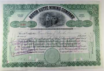 Lot #1124. View Larger | Rotate 1911 Stock Certificate, North Butte Mining Co., Minnesota, Quality American Bank Note Co. Printed VF