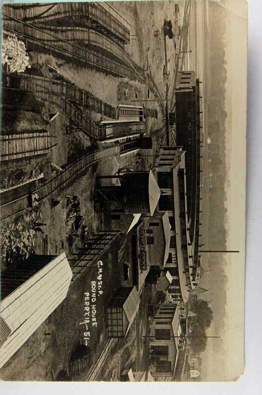 Lot #1391. View Larger | Rotate Railroad Round House, Real Photo w/ Kruxo P.C. back, Iowa, Perry, Used Same 1914 m cor cr & m cor flt F-VF