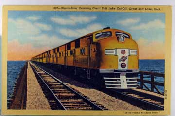 Lot #1447. View Larger | Rotate Adv. Union Pacific Streamliner, Curt Teich Pub. L m cor cr Near VF