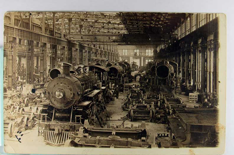 Lot #1390. View Larger | Rotate Train Workshop Interior, Real Photo, Used Lowell, Massachusetts 1914 tape rep. edge tears & crs F