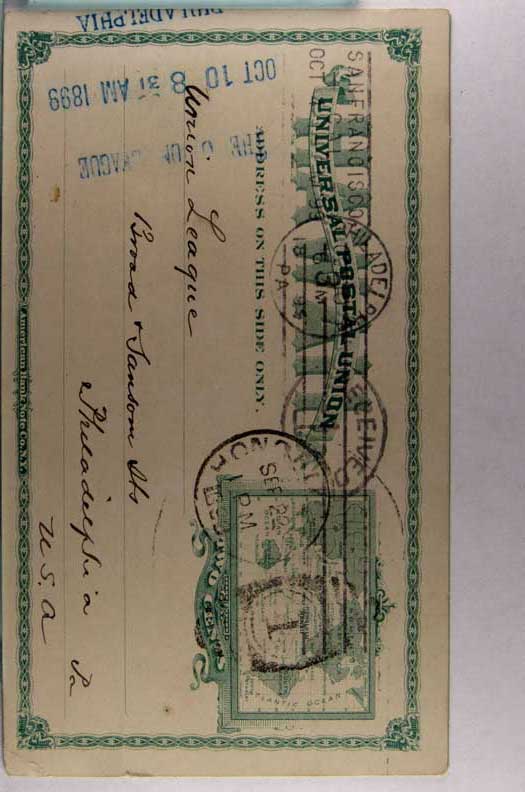 Lot #1520. View Larger | Rotate Hawaii, Two Cent Gov’t Postal Card, Used 1899 cor cr Near VF