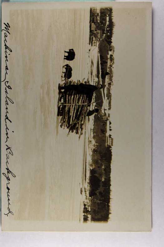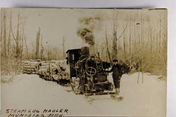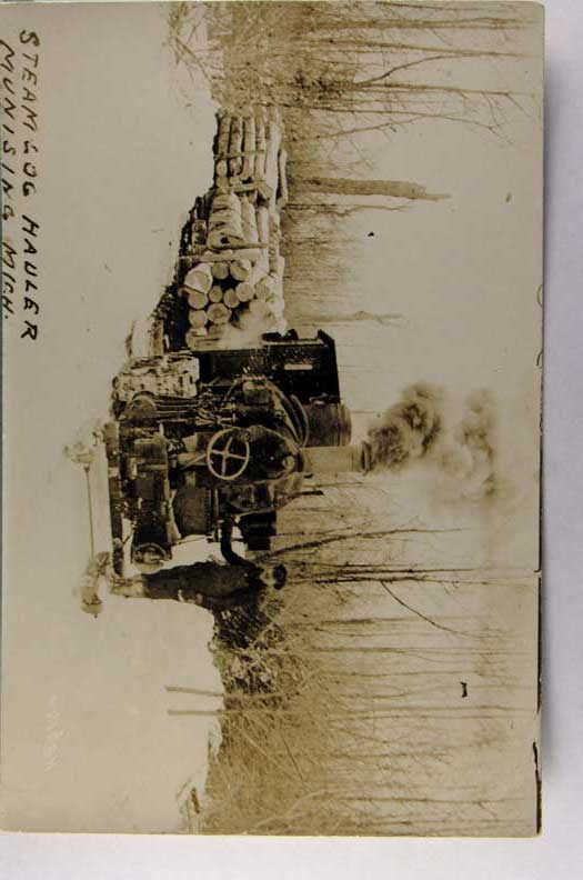 Lot #1436. View Larger | Rotate Michigan, Munising, Real Photo w/ AZO P.C. back, “Steamlog Hauler” edge cr F-VF