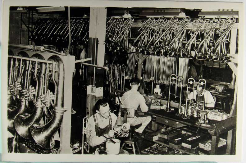 Lot #1527. View Larger | Rotate Indiana, Elkhart, C.G. Conn Musical Instrument Factory, Brass Instrument Assembly, Real Photo VF