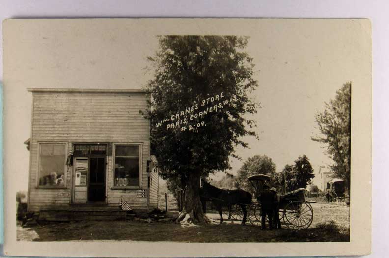 Lot #1555. View Larger | Rotate Wisconsin, Paris Corners, Real Photo w/ AZO P.C. back, “Crane’s Store” F-VF