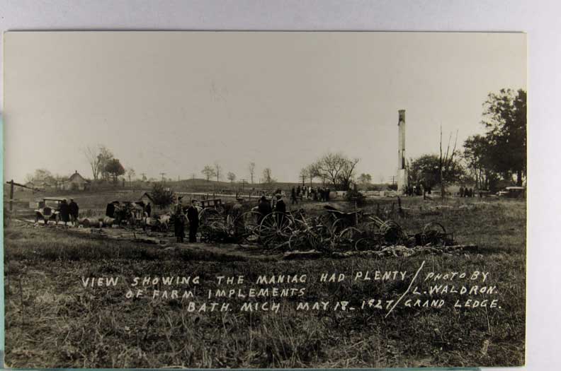 Lot #1417. View Larger | Rotate Michigan, Bath School Bombing, Real Photo, “Maniac Had Plenty of Farm Implements” VF