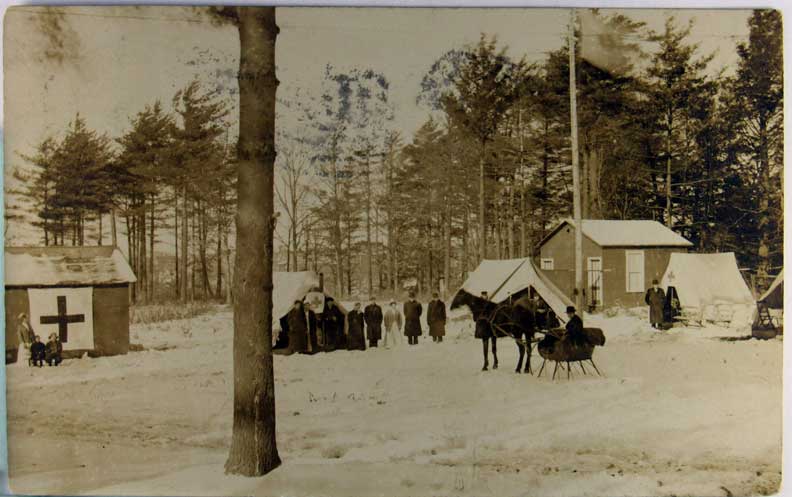 Lot #1462. View Larger | Rotate New York, Schenectady, Real Photo w/ Kruxo P.C. back, Red Cross Camp in Winter, Used Same 1909 m cor wear Near VF