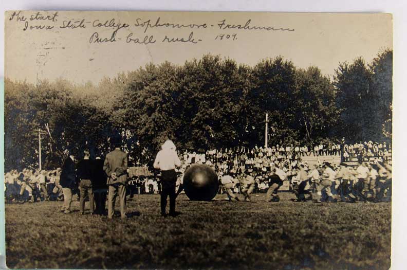 Lot #1399. View Larger | Rotate Iowa, State College, Real Photo, Push Ball, Used 1909 m wof & cor cr Near F-VF