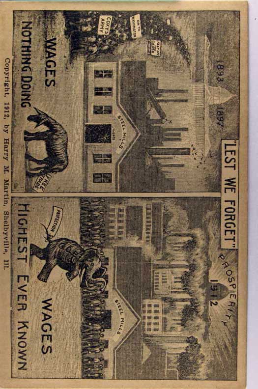 Lot #927. View Larger | Rotate 1912 Republican Campaign Postcard, w/ Donkey & Elephant VF