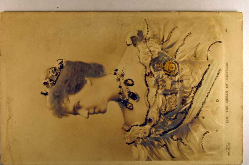 Lot #1468. View Larger | Rotate H.M. The Queen of Portugal, Quality Embossed Bas Relief photo w/ some glitter added m cor cr F