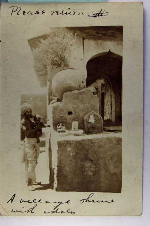 Lot #1604. View Larger | Rotate India, Ajmer, Real Photo, “Village Shrine with Idols”, Used Bombay wof & or crs Near F-VF