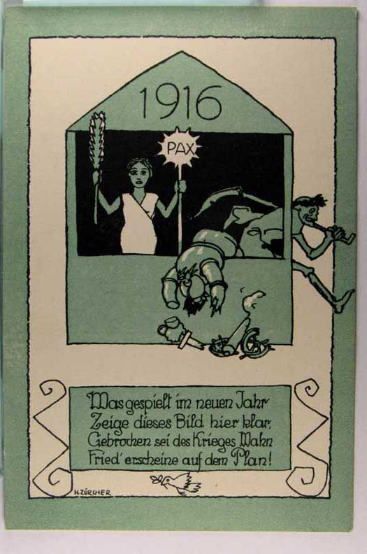 Lot #985. View Larger | Rotate W.W. I, German Pub., New Year w/ 1916 Year Date, Art. Sig. H Zurcher DB VF